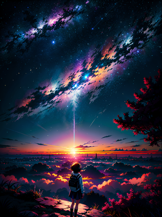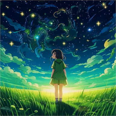 The girl was in the darkest corner of the garden, looking towards the infinite universe. Her curious eyes were lost in the stars, and her mind was immersed in the immensity of the cosmos.Every bright spot in the sky was a door to the unknown, a reminder of the vastness and mystery of space. She dreamed of being an astronaut, exploring distant worlds and discovering cosmic secrets.