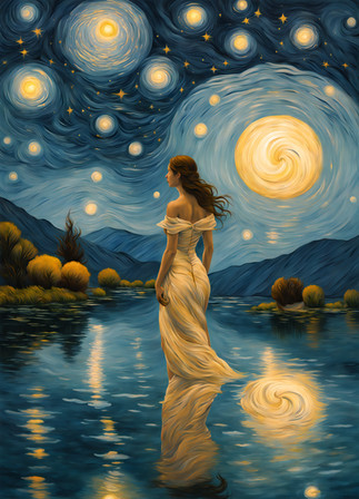 La misteriosa dama emergió de las aguas, su presencia iluminada por la luna y envuelta en enigmas. El mundo onírico y el real se entrelazaron en su mirada, reflejando un pasado antiguo y un futuro incierto. ¿Era un ser mitológico o una criatura de leyendas? Nadie sabía de dónde venía ni cuál era su propósito, pero su aura trascendental despertaba la curiosidad de todos. Los susurros de su nombre resonaban como ecos del mar, y su paso dejaba rastros de magia en la arena. Su aparición era un recordatorio de la belleza y el misterio que yacían bajo la superficie de la realidad.