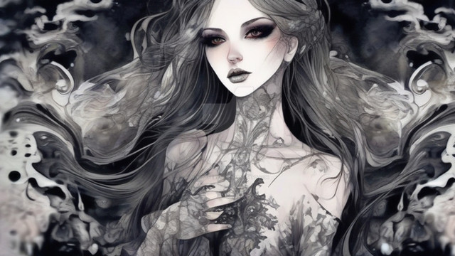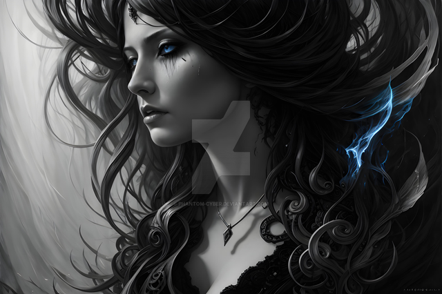 In the shadowy corner of a magical world, a girl comes across her own darkness. The shadow figure of her stands tall, independent and mysterious. Like a reflective alter ego, the shadow urges her to face her deepest fears and secrets. Intrigued and determined, the young woman plunges into the darkness, seeking to understand her own duality. As she explores the dark side of herself, she discovers strength in vulnerability and power in acceptance. On this journey towards authenticity, her shadow becomes her ally, guiding her towards integration and inner transformation.---------------------------------------------