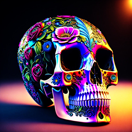 In a forgotten corner of the garden, a skull rested among the flowers. It was a reminder of the transience of life. The flowers, with their ephemeral beauty, grew all around, their vibrant petals contrasting with the darkness of the skull.Every day, someone left a new flower in her empty hole, a tribute to memories and the inevitable transformation of life into death. Though it lay silent, the skull taught a lesson: in the endless cycle of life and death, flowers bloomed, and beauty persisted even in the presence of mortality.