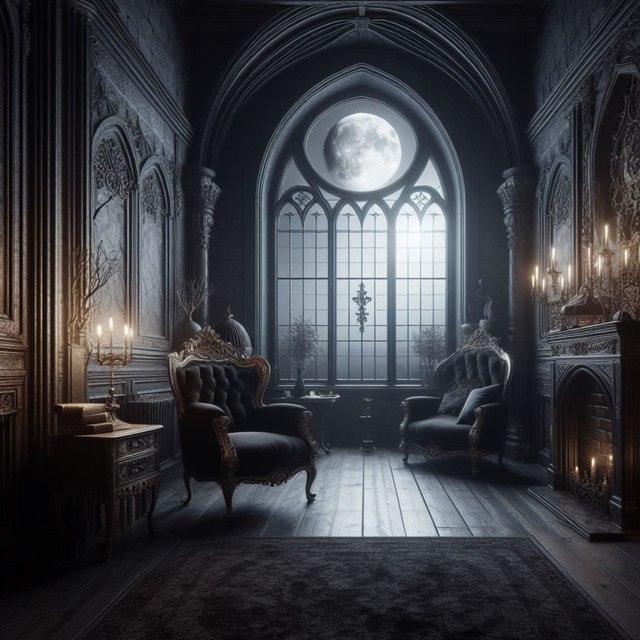 Inside the Gothic room, the shadows are complicit in the secrets it hides. The old and dark furniture seems to be a witness of bygone times, it whispers forgotten stories in the crackling of the candles.In the center, an ebony piano waits patiently. His ivory keys await the fingers of a musician who may never return. The air is charged with melancholy.