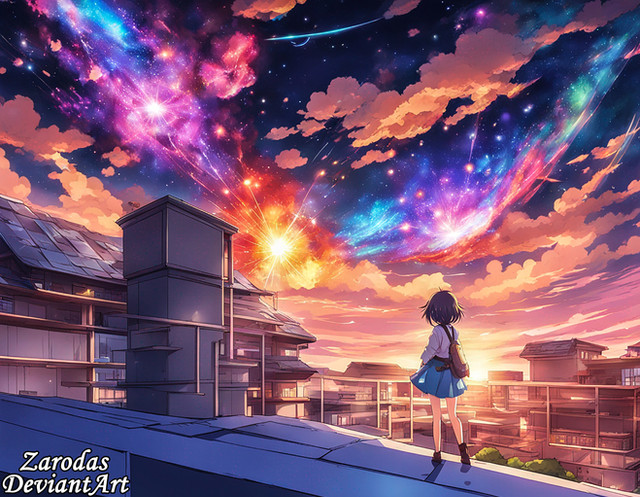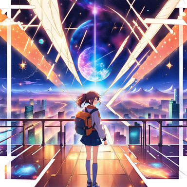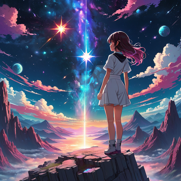 The trail stretched off into the distance, inviting exploration into the unknown. The girl, with determination in her eyes, walked towards the horizon. Each step was a challenge to time and space, revealing cosmic secrets as she went. The open sky above her seemed like an infinite canvas of possibilities. She was a traveler in search of the unattainable, a seeker of stars and mysteries. Her heart beat to the rhythm of the universe, and her path led her into the unknown, into the infinity that she awaited with her secrets and wonders.-----------------------------------