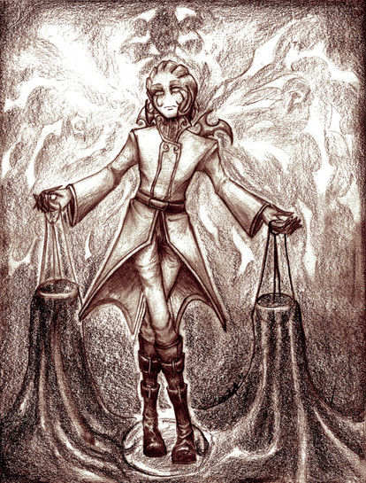 I would like to thank Dragon-FangX [dragon-fangx.deviantart.com] for the dissipation idea. I saw it in a drawing of one of his OCs, Ohm [dragon-fangx.deviantart.com/art/Ohm-113261344], and I fell in love with the mysterious feelings associated with characters like this.