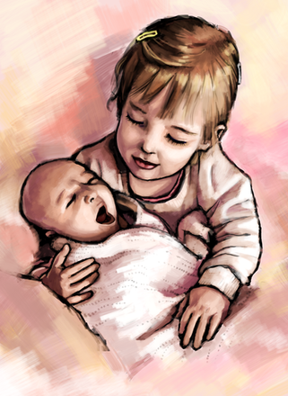 A painting of two sisters using Artisan oils. Not exactly the first time I have use oils, but the first time I have finished a painting with them I think.Winsor and newton Artisan oils on canvas paper. 5-6 hours probably.