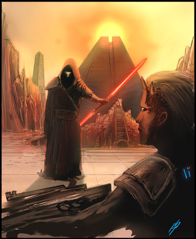 But anyways I had a little time to kill before a meeting and decided to get some practice painting clouds in again, that turned into an hour of painting smoke which led to several more hours of turning the practice picture into something a little more presentable and my brain after listening to Avenged Sevenfold for hours and hours was stuck on Sith (or my brain might just always be stuck on Sith, it's hard to say anymore >_<). I figured it might be nice to show them after a battle kinda chilling a bit rather than attacking people given I'm already working on an ambush picture. All in all I probably spent 4 hours on it.