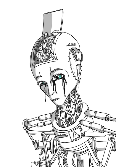 I was doodling in my journal, drawing robot hands for weeks, so in Design I got really bored and drew out the whole robot. Sort of a salute to all my favorite sci-fi stuffs I suppose, because they all seem to have really cool android-robot people. :3Related content