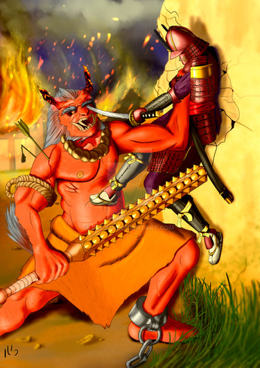 Grazie ^_^ mi sono ispirata al un mostro guerriero Babul, quello rosso con i capelli bianchi e le zanne, visto nell'episodio 42, che un po' mi ricordava un Oni