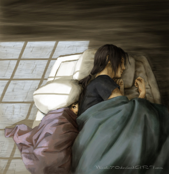 I love how you actually made him look like a child. Because he was thirteen when he massacred the clan, and I don't think the manga does justice to the loss-of-innocence scene. Beautiful work as always.