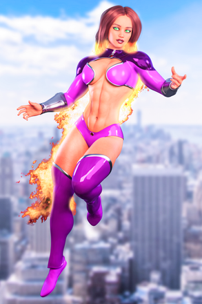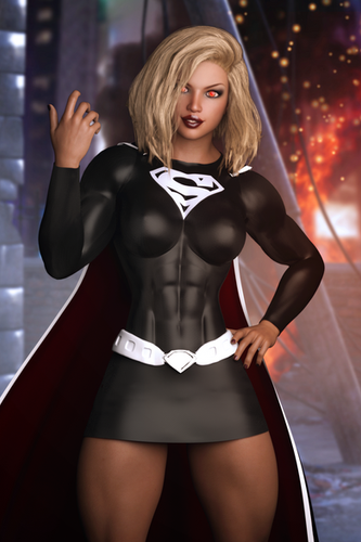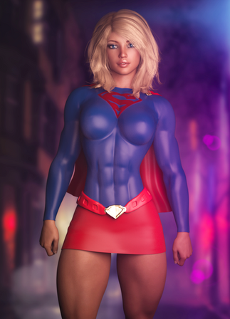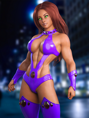 I'm guessing that she must have been working out in private, used a spell on her muscles, or decided to fight physically (as in, using more than just her powers), and the results are showing. Either way, she looks great like this, and her leotard really shows it off quite nicely. Good job, and keep up the good work.