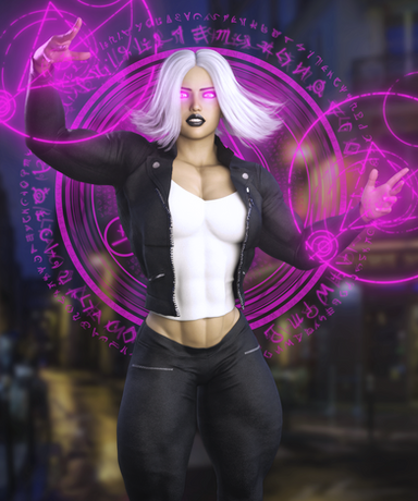 She looks like a fantastic villainess. (At least I assume she is a villainess).