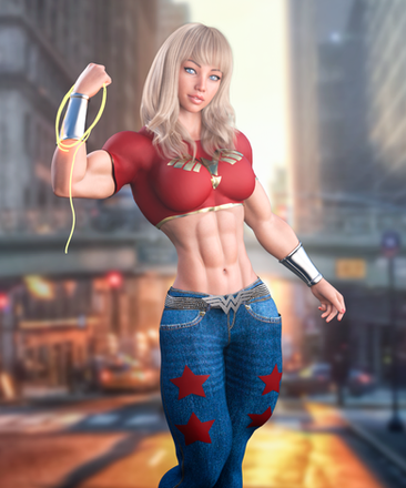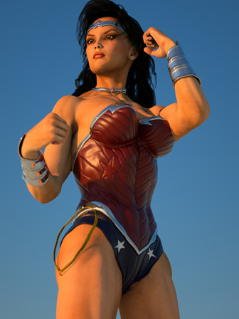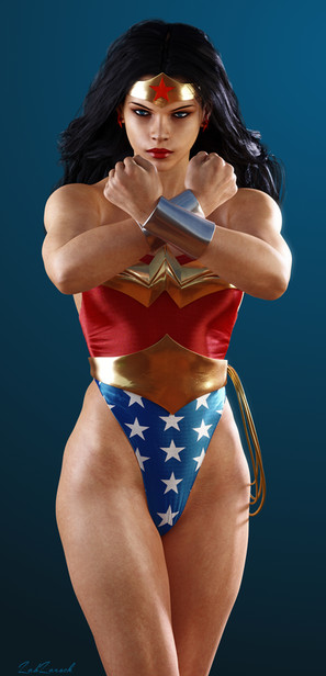 "Wonder" is just about right of a description about this, since this looks wonderful. The abs and arms look particularly great here, and it really fits her as an Amazon princess. Good job, and keep up the good work.