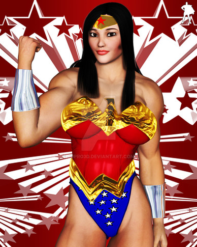 That is one mighty fine looking Wonder Woman. Love the outfit and it compliments her physique very well and a nice little smile too.