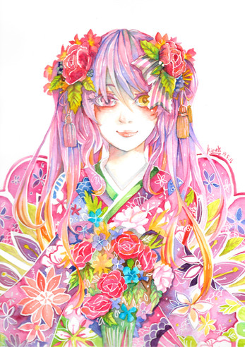 #animegirl #copic #design #flower #manga #mangagirl #mangastyle #markers #oc #original #random #water #watercolors