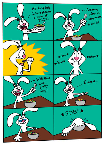 Me and my friend Lizzie were wondering what would happen if the Trix Rabbit finally got his trix--the result was this.Done in Paint