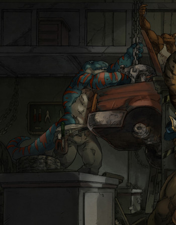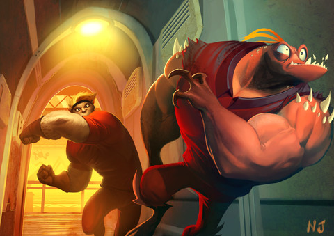 DRINK DRINK DRINK!!! Never played the Bandicoot games so I don't know the characters, I just love the mood and coloring of this piece. A lot of atmosphere! FUNNESS!ย