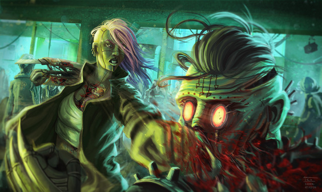 Hi! These are characters from my own stories. I haven't submitted anything to publication yet, but I do post stories occasionally under this account: [link] There's one story posted that features the cyborg in this commission: [link]