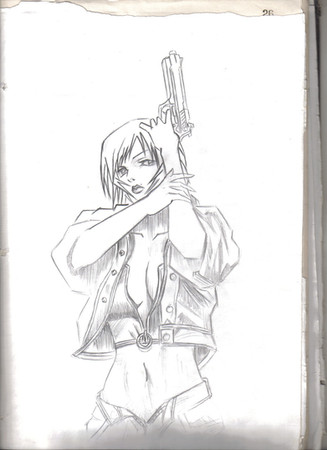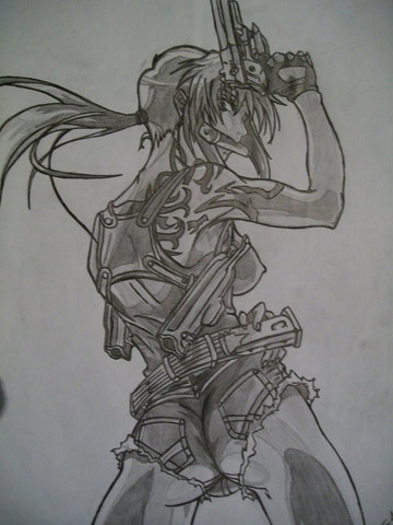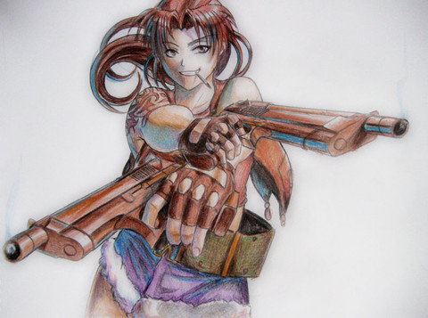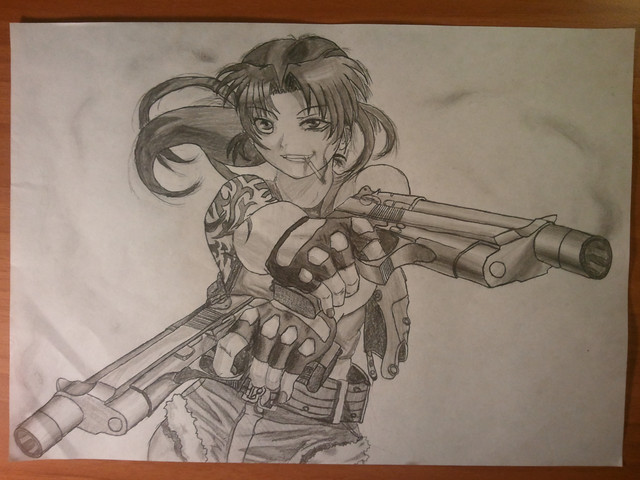 Revy manga character Black Lagoon. Drawing done in pencil in an approximate time of one hour.Revy personaje del manga Black Lagoon. Dibujo hecho a lรกpiz en un tiempo aproximado de una hora.