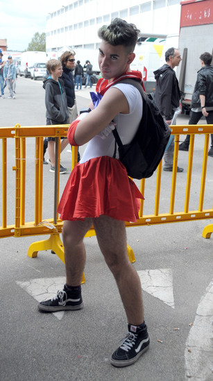 This guy came up and told me he was annoyed at the number of people asking him for a riddle, as if he wasn't asking for it.I did feel his pain, since everyone kept pointing at my Where's Wally costume and saying 'Found You'.