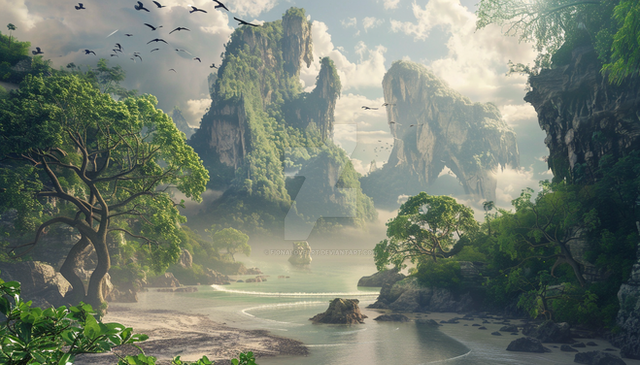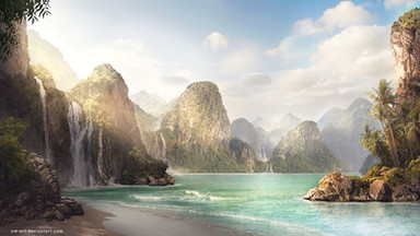 #lag #laguna #ocean #sand #sea #sweem #beach #landscape #mattepainting #nature #palm #summer #sunlight #water #waterfall
