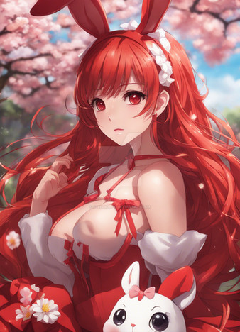#ai #animegirl #beautifulgirl #bunnygirl #cuteadorable #rabbit #rabbitgirl #red #sakura #1girl #animemangagirl #verybeautiful #stablediffusion #pinupgirl #whitehairgirl