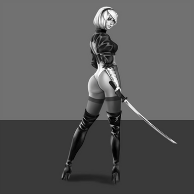 #2b #ass #backpose #black #butt #game #photo #sword #blureeyes #android #blackandwhite #blacksuit #digitalart #digitaldrawing #digitalillustration #digitalpainting #fanart #girl #painting #practice #reference #shorthair #whitehair #yamato #nierautomata #nierautomata2b