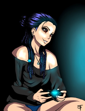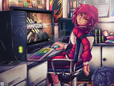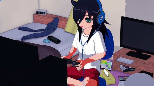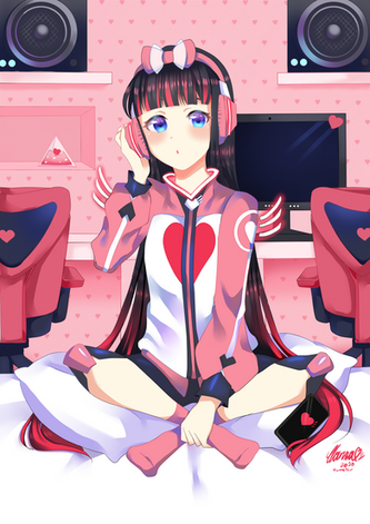 Reality she lover game very much, But my commissioner want she to sleepy, I think she so tired to play the game all night XD