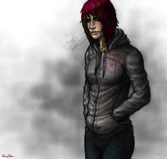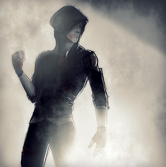 the blood splatters look uncannily real. and I love the hoodie! for some reason I never manage to draw hoodies so they look right...