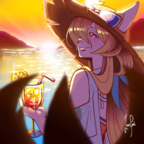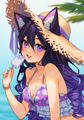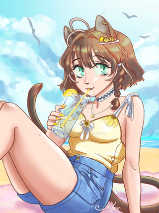 #digitalart #fanart #originalcharacter #characterdesign #kemonomimi #artfight #cat #flower #hibiscus #paw #summer #summertime #artfight2024