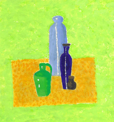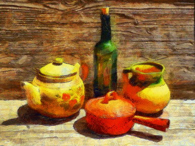 Now that's some colourful bunch of bowls and jugs. This is a still life with visual approvals to go to an art musuem