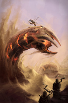 woah.... I love the motion..... It just makes it seem so much more alive. I also like the texture of the foam and spray from the ocean... (or is it sand? o.o), and making surrounded by red but still being able to see the sky gives it a more colorful look to it.
