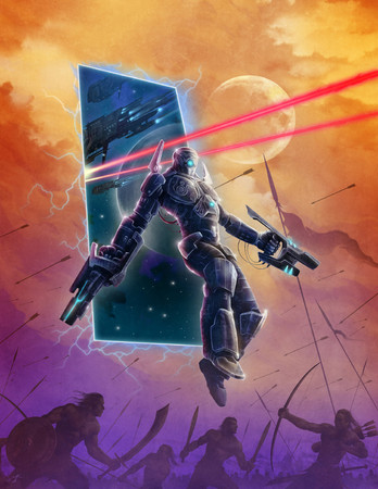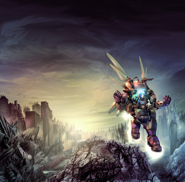 this is AWESOME!!! i like how you ties in the sort of present day building in the background with the fantasy dragons and then the futuristic sci-fi robot fighting up front and fighting! plus i like how the colors sort of gradient and have different places throughout the picture!