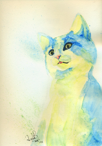 I love the spray of colours you have used on the sides! I have noticed you use this technique a lot in you paintings, but here it is more evident and it adds character to your beautiful cat! I love how the colours range from transparent to highly pigmented, and the dripping looks really cool! I like the technique you have used for pattern and texture on the cats neck, i guess the white really adds definition. I love how sharp the eyes are, yet how subtle the fangs are! I like this contrast from the way most artists would interpret this 'roar' expression, as i am sure i would be inclined to accentuate the fangs. Your technique is very sharp, well done!