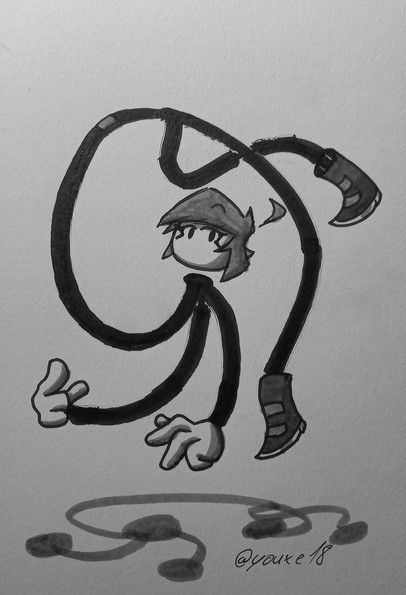 Dibujito sumamente inspirado en ilustraciones de plastic man donde esta parado haciendo curvas locas e innecesarias con sus extremidadesRelated content