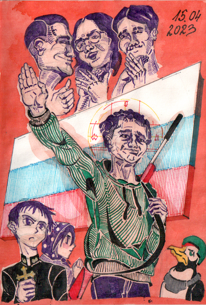 Leon, played by Jean Reno in the film Leon (1994)- Paper, sketch markers, permanent marker, liners.