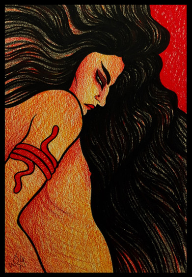 #death #flower #rose #witch #darkfantasy #darkmagiciangirl #ecoline #inkdrawing #lifeanddeath #magicalgirl #mythicalcreature #originalcharacter #originaldesign #serpent #shaman #skull #snakegirl #tattoo #traditionaldrawing #watercolorpainting #illustrationdrawing