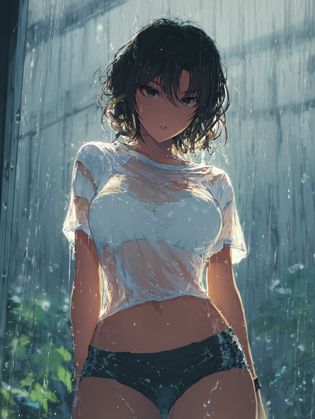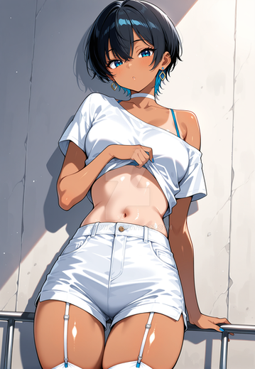 #digitalart #anime #animegirl #digitalpainting #sexy #ai #flatcolor #navel #shower #thighhighs #undressing #flat_color #ai_generated