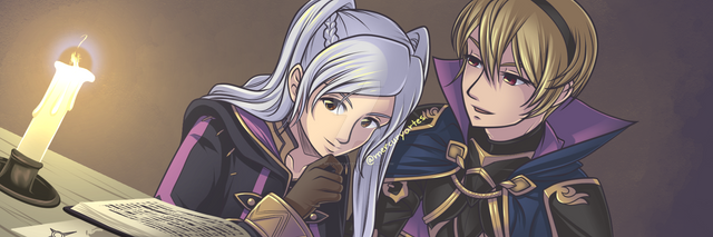 And its a lovely piece. I really like this couple too. And it works on many levels - Cordelia loves romance novels, and both Robin and Cordelia can also use tomes as weapons in the game, given the correct character class assignments [including Robin's default and some of Cordelia's promotions and re-classes].