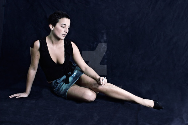 wala! Es una perspectiva muy exagerada! Casi parece que la hayas pillado saltando en un concierto y que mirara a la cámara a sus pies. Está muy bien.