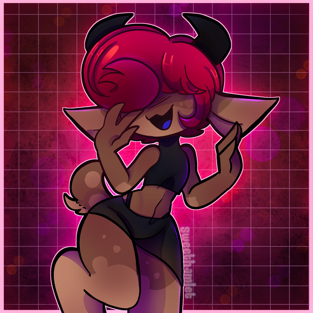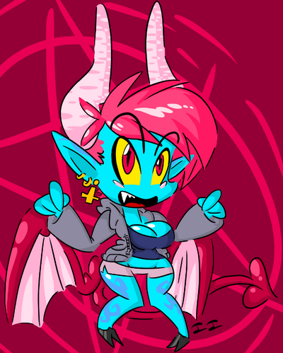 Little drawing of @ schmuccubus's lil glowstick-eating imp, Cym!patreon.com/nodicemike