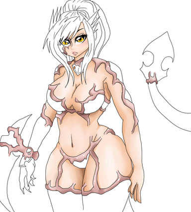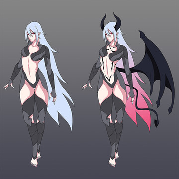 Ref-sheet de ma perso après sa rencontre avec un démon.Lorsque le démon est calme (à gauche), lorsque le démon prend possession du corps (à droite).