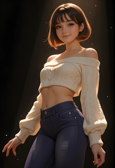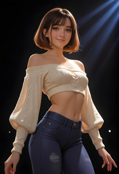 #fanart #barefeet #colette #magic #magicalgirl #midriff #modelling #rabbits #sixpackgirl #sweater #sweatergirl #bobhaircut #denimjeans #sweaterpuppies #magiciansassistant #jeansandfeet #midriffshowing #ai_art #ai_generated_art