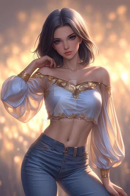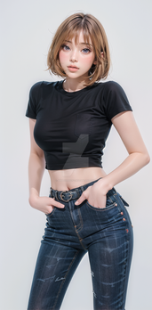 #fanart #barefeet #colette #magic #magicalgirl #midriff #modelling #sweater #sweatergirl #bobhaircut #denimjeans #sweaterpuppies #magiciansassistant #jeansandfeet #midriffshowing #ai_art #ai_generated_art