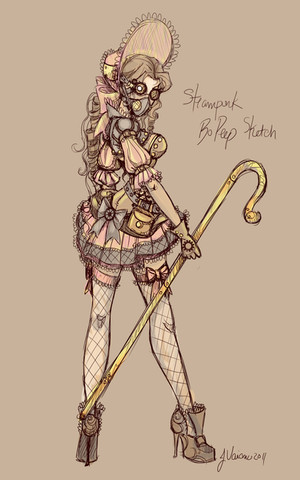 Another interesting idea, particularly the crinoline with a miniskirt and the Steampunk gas mask (I don't think I've ever seen a Steampunk breathing mask design before).