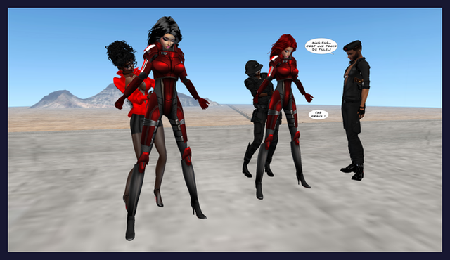 - DON’T IMAGINE RUNNING AWAY WITH THESE OUTFITS, YOU WON’T BE ABLE TO ESCAPE FROM THE TRACKING SATELLITES...- Maybe, we’ll see... But right now, you better worry about yourself...