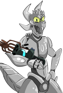 Monitor is a high ranking military commander android, with the conciousness of a dead military commander.With his new body, he is able to isolate the strategic and calm side of his personality from his more bold and energetic side, allowing him to be a very efficient commander when he needs to while still being able to boost morale when needed.