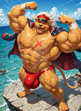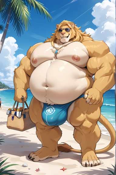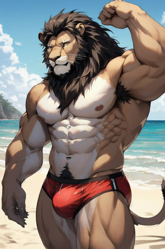 #ai #beach #flexing #lion #speedo #anthropomorphic #hypermuscle #aiartwork #stablediffusion