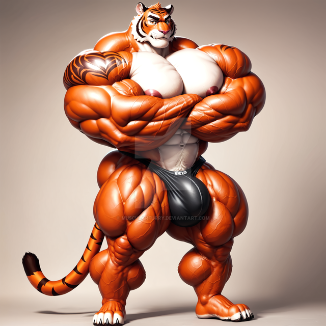 #ai #giant #liger #anthropomorphic #hypermuscle #flexingmuscles #hugebulge #aiartwork #stablediffusion