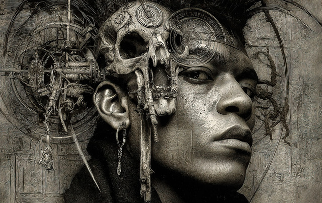 great job! a very cool use of textures. great manip on the face. looks very dark and creepy