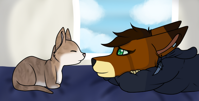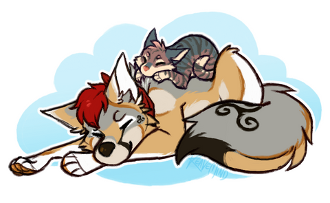 I spent a few days on this and i think i'm proud of it.His name is Octane, he's really insecure about his face but he's really sweet when you get to know him, his tail has a face, it isnt burned like his though. Octanes face usually bleeds but not enough to kill him, just to make others notice it. He enjoys playing in caves and catching butterflies or moths.