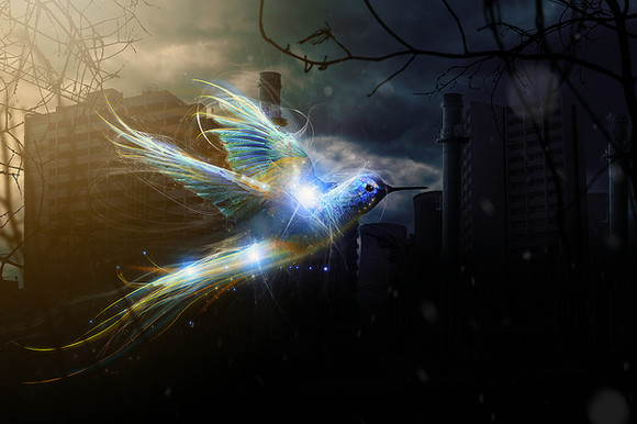 For this image I used three or four lava stones that I have photographed from different perspectives. I have used a very strong lamp for the light.